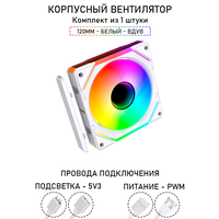 Купить Модульный вентилятор — 5PRO Inline — 120мм, A-RGB, PWM+5v3, Комплект из 1 штук, белый, на выдув из корпуса с доставкой по всей России.