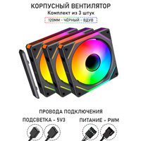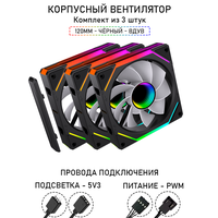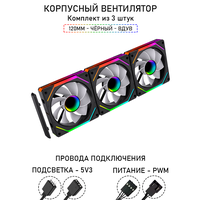 Купить Модульный вентилятор — 5PRO Inline — 120мм, A-RGB, PWM+5v3, Комплект из 3 штук, чёрный, на вдув в корпус с доставкой по всей России.