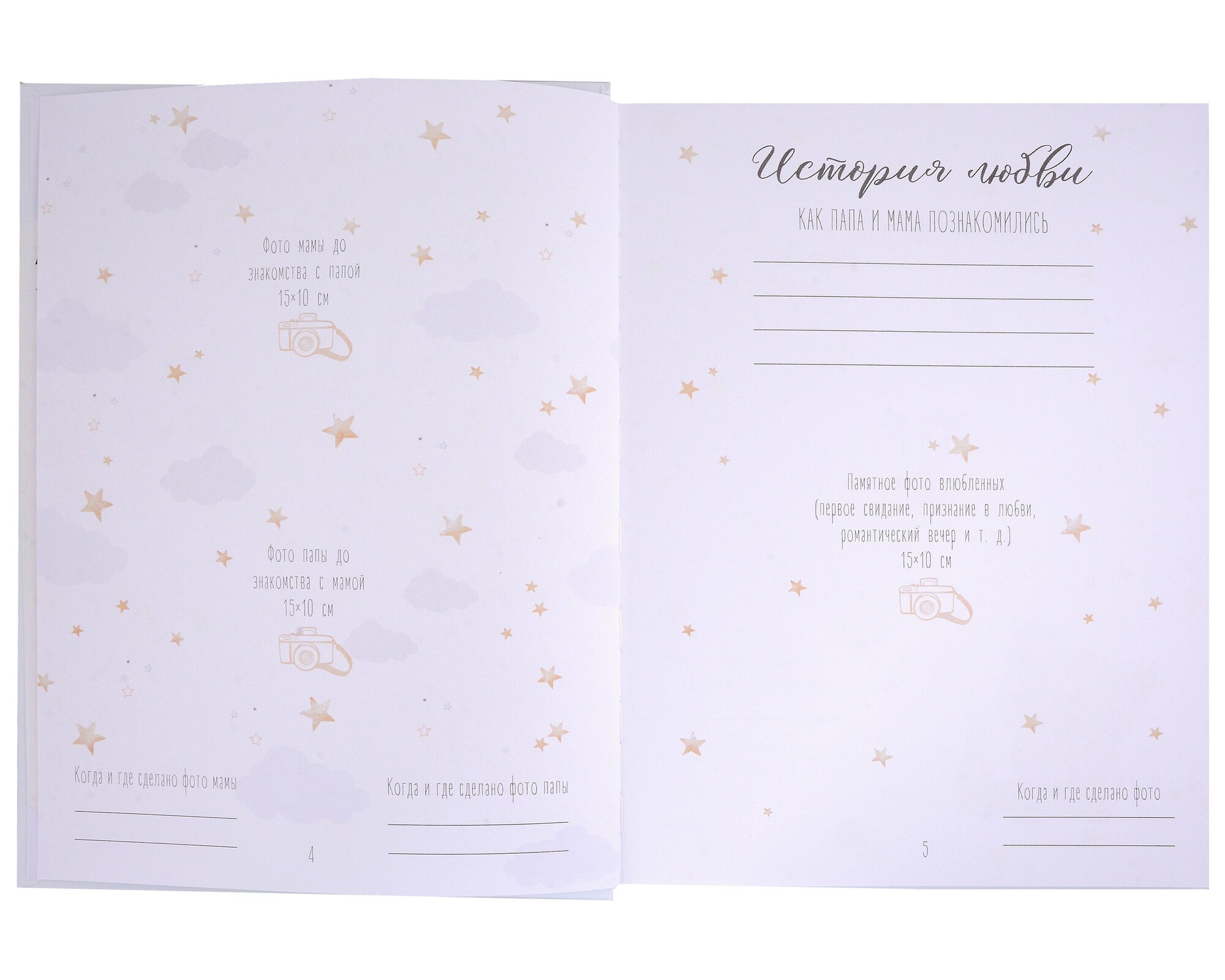 Наши фотоальбомы для новорожденных созданы специально для того, чтобы сохранить в памяти самые яркие моменты жизни ребенка. Они отлично подходят как для девочек, так и для мальчиков. Формат А4 и твердая обложка делают эти альбомы стильными и долговечными. Это отличный подарок для молодых родителей. Сделанные из плотной офсетной бумаги, наши детские фотоальбомы спроектированы так, что вмещают в себя более 85 фотографий, помогая запечатлеть все важные моменты развития ребенка. В наших фотоальбомах вы сможете размещать фотографии формата 10х15 см и 15х20 см. Наши первые альбомы малыша дополнены комплектом наклеек букв+цифр и конвертом для важных мелочей (например, бирки из роддома). С помощью наклеек вы сможете украсить альбом и сделать его именным, указав имя малыша и дату его рождения. Стильное оформление наших фотоальбомов для новорожденных создаст идеальную атмосферу для вклеивания фотокарточек и добавления подписей к каждой из них. Общее количество страниц – 96, что предоставляет достаточно места для всех воспоминаний. Это прекрасный подарок новорожденному малышу на выписку из роддома, на крестины или парам, которые находятся в ожидании малыша. Все важные события из жизни младенца уже прописаны на страницах альбома (история любви родителей; выписка из роддома; генеалогическое древо семьи; словарик детского лепета; как резались молочные зубки; прогулки; купание; сон; первые шаги; первый Новый год и т. д.). В нем есть графы для памятных заметок, которые сделают альбом еще более уникальным (когда и где сделано фото; дата первого узи; дата, время, рост, вес при рождении; дата первого зубика; любимая игрушка для сна; что нравится кушать; мои первые шаги и т. д.). Наши большие фотоальбомы для новорожденных мальчиков и девочек будут радовать вас и вашего малыша на протяжении многих лет. Выберите свой идеальный детский фотоальбом уже сегодня и запечатлеть каждый момент вашей радости!