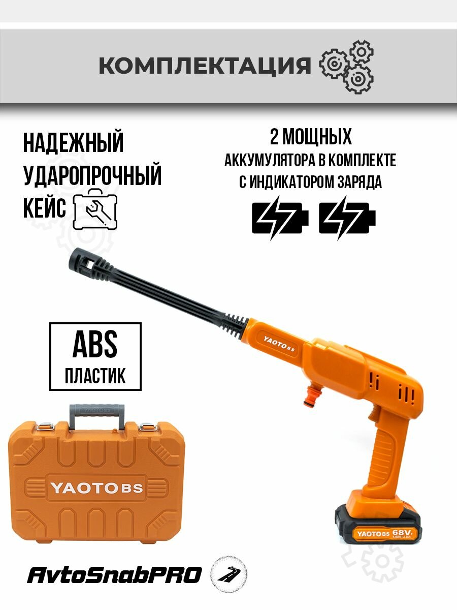 Мойка высокого давления YAOTO BS MOIKA59068, 33 Бар, 180 Л/Ч, 2 Аккумулятора, Шланг 4 метра: сравнение цен, характеристики, фото, актуальное наличие и цены.
