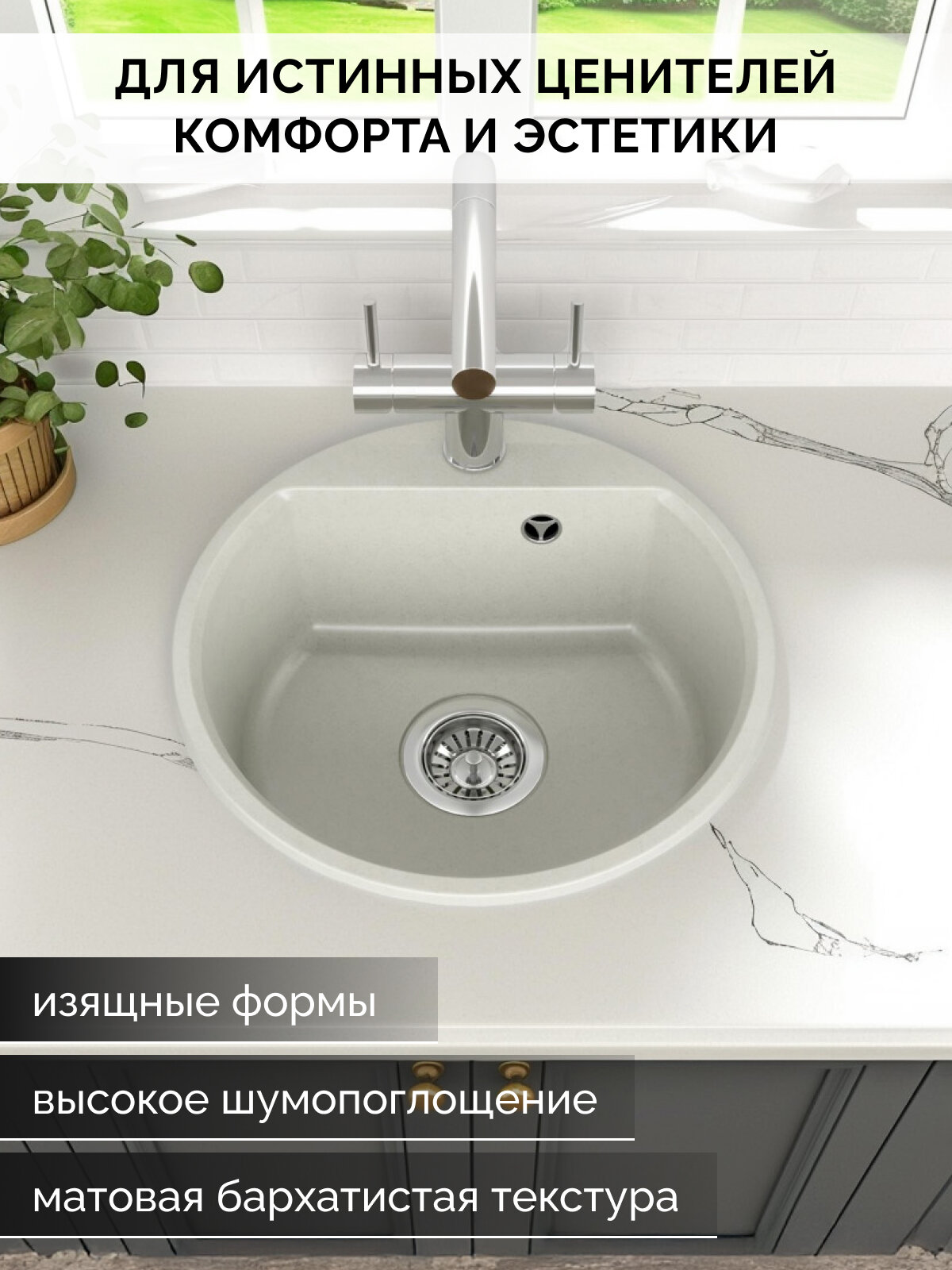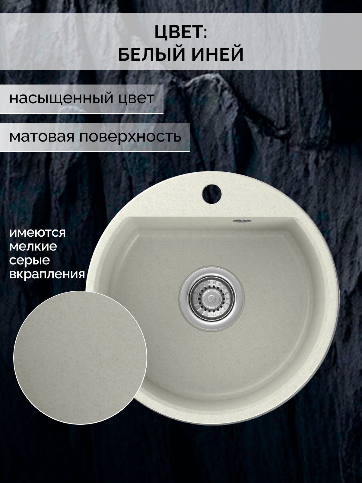 Мойка DARILINE, кварцевый искусственный камень, круглая, белый