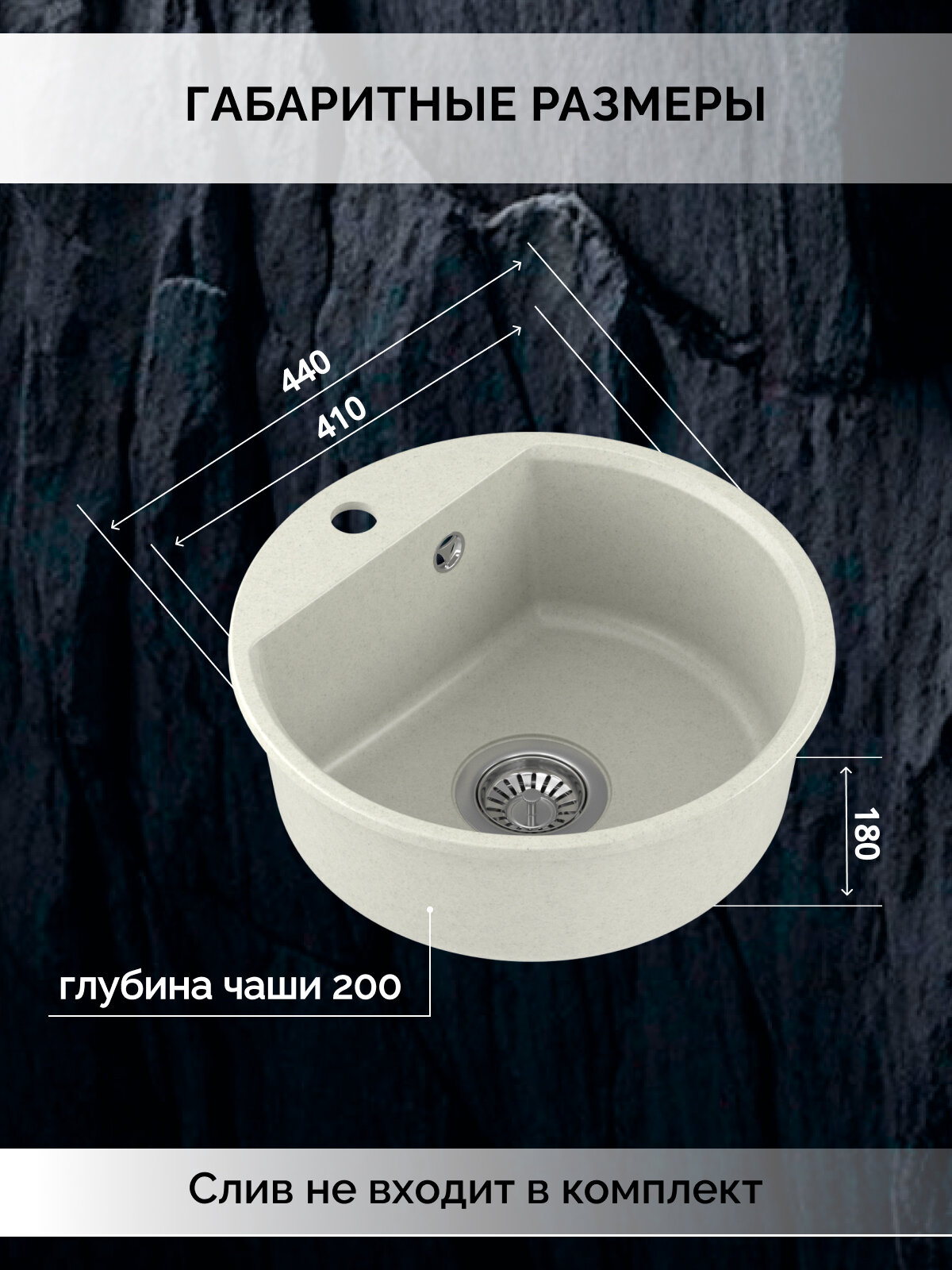 Мойка DARILINE, кварцевый искусственный камень, круглая, бежевый