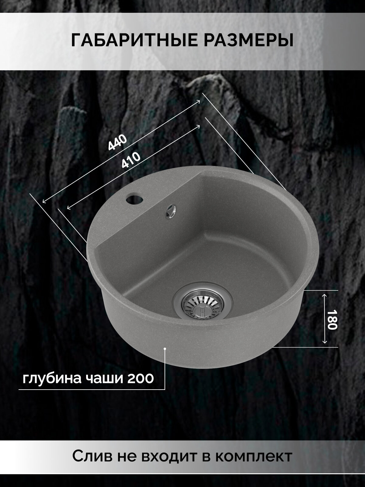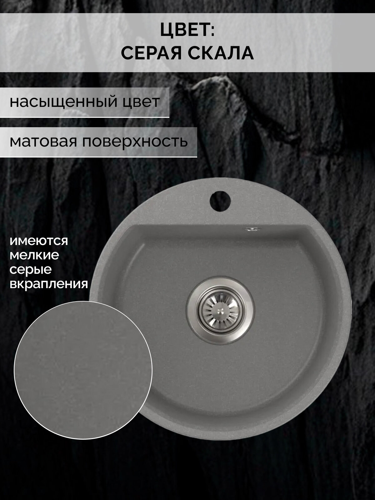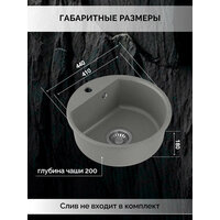 Мойка DARILINE, кварцевый искусственный камень, круглая, серая