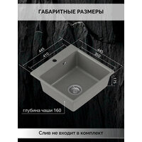 Мойка DARILINE DLкварц, кварцевый искусственный камень, серая, 59x44x15 см