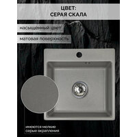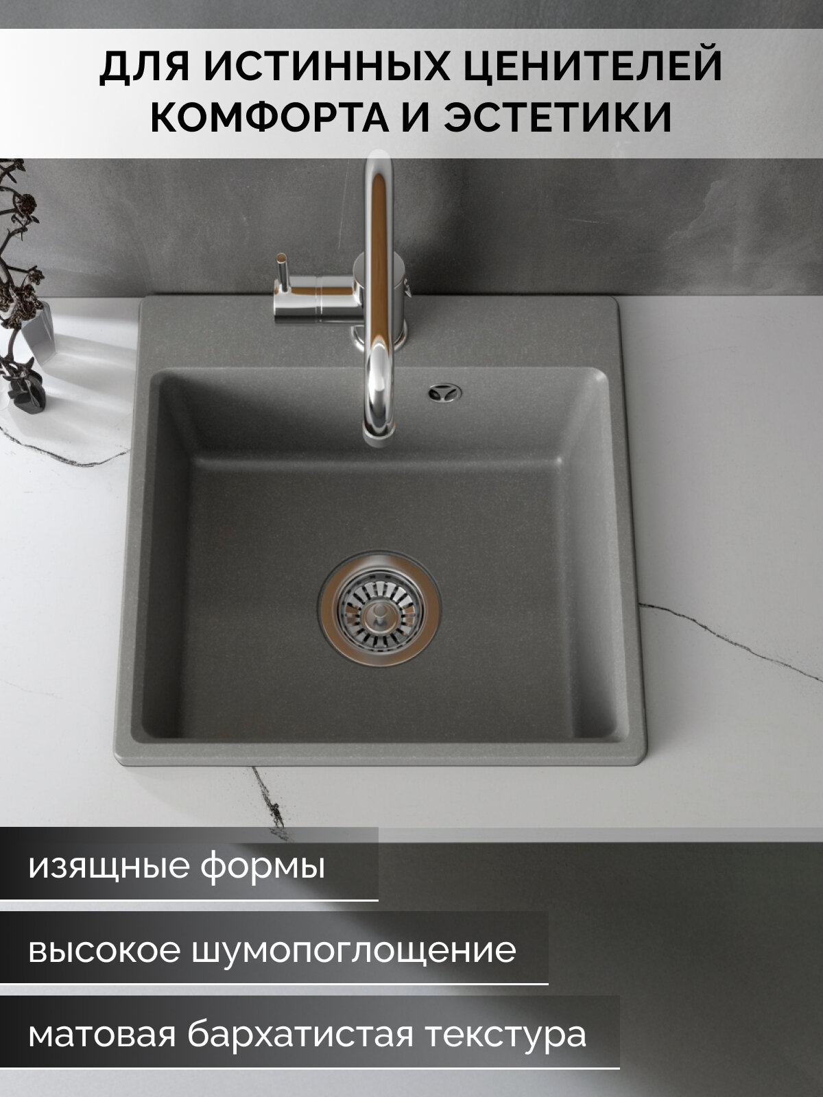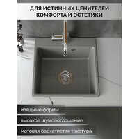 Мойка для кухни каменная серая 45х51, врезная/подстольный монтаж, прямоугольная