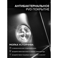 Мойка для кухни из нержавеющей стали GOODSTUFF (50х45 см) в цвете графит- стильный и функциональный аксессуар для вашей кухни. Поставляется мойка в комплекте c сифоном, коландером и . Кухонная мойка изготовлена из нержавеющей стали, что гарантирует долговечность и надежность в использовании. Толщина чаши мойки 0,8 мм Толщина бортика мойки - 3 мм Цвет графит Сифон, дозатор и коландер в комплекте. Нержавеющая сталь марки SUS 304 относится к пищевым хромомарганцевым сплавам, которые соответствуют всем санитарно-гигиеническим требованиям. Она стабильна в средах, где повышена концентрация щелочей и кислот. • Металл инертен при контактах с продуктами. • Сплав коррозионно устойчив, стабилен в химически агрессивных средах; • Хорошо переносит значительные колебания температур, сохраняя свои прочностные характеристики; • Сталь надежная, прочная и пластичная, устойчивая к износу; • Легко поддается горячей и холодной обработке, свариванию, резке, ковке, высадке; • Не содержит токсинов и вредных примесей; • Характеризуется повышенной трещиностойкостью; • Нержавейка хорошо прокаливается, отличается высокой твердостью; • Можно применять для работы в средах органических кислот; Прямоугольная форма мойки и чаши позволяет максимально эффективно использовать пространство на кухне. Раковина из нержавеющей стали имеет хорошую шумоизоляцию, что прибавляет комфорт при её использовании. Выбирая мойку для кухни GOODSTUFF из нержавейки (50х45 см) в графитном цвете - вы получаете стильный и функциональный аксессуар для вашей кухни, который прослужит вам долгие годы.
