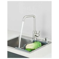 Мы предлагаем вам многофункциональную кухонную стальную раковину, которая является идеальным решением для вашего кухонного пространства. Раковина изготовлена из нержавеющей стали, которая отличается прочностью и устойчивостью к повреждениям и коррозии. Антибактериальное нанопокрытие и врезная конструкция обеспечивают легкую очистку. Он легко моется и не впитывает запахи, что делает его очень подходящим для использования на кухне. Раковина имеет стильный и изящный дизайн, который позволяет расширить пространство и сделать его более изысканным и сдержанным.