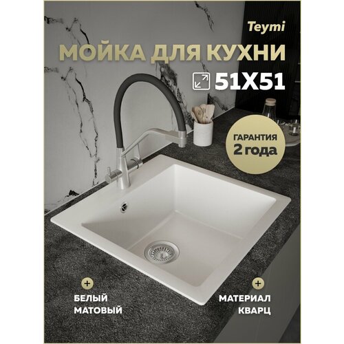 Купить Мойка для кухни 51х51 белая матовая Teymi Lori Box T120133 с доставкой по всей России. Мойка для кухни 51х51 белая матовая Teymi Lori Box T120133: сравнение цен, характеристики, фото, актуальное наличие и цены.