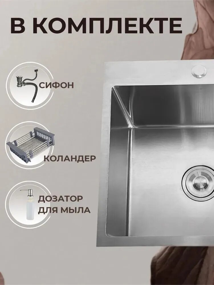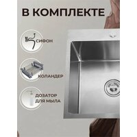 Мойка для кухни из нержавеющей стали GoodStuff (60х45 см) - стильный и функциональный аксессуар для вашей кухни. Поставляется мойка в комплекте c сифоном, коландером и дозатором для мыла. Кухонная мойка изготовлена из нержавеющей стали, что гарантирует долговечность и надежность в использовании. Толщина чаши мойки 0,8 мм Толщина бортика мойки - 3 мм Цвет серебро, сифон в комплекте. Нержавеющая сталь марки SUS 304 относится к пищевым хромомарганцевым сплавам, которые соответствуют всем санитарно-гигиеническим требованиям. Она стабильна в средах, где повышена концентрация щелочей и кислот. • Металл инертен при контактах с продуктами. • Сплав коррозионно устойчив, стабилен в химически агрессивных средах; • Хорошо переносит значительные колебания температур, сохраняя свои прочностные характеристики; • Сталь надежная, прочная и пластичная, устойчивая к износу; • Легко поддается горячей и холодной обработке, свариванию, резке, ковке, высадке; • Не содержит токсинов и вредных примесей; • Характеризуется повышенной трещиностойкостью; • Нержавейка хорошо прокаливается, отличается высокой твердостью; • Можно применять для работы в средах органических кислот; Прямоугольная форма мойки и чаши позволяет максимально эффективно использовать пространство на кухне. Раковина из нержавеющей стали имеет хорошую шумоизоляцию, что прибавляет комфорт при её использовании. Выбирая мойку для кухни GoodStuff из нержавейки (60х45см) с сифоном в цвете хром - вы получаете стильный и функциональный аксессуар для вашей кухни, который прослужит вам долгие годы.
