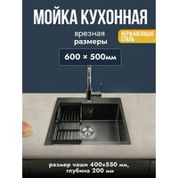 Купить Мойка для кухни 60х50 см графит толщина 3,0 х 0,8/200 мм сифон с переливом + корзина, нержавеющая сталь, 1 шт. с доставкой по всей России.