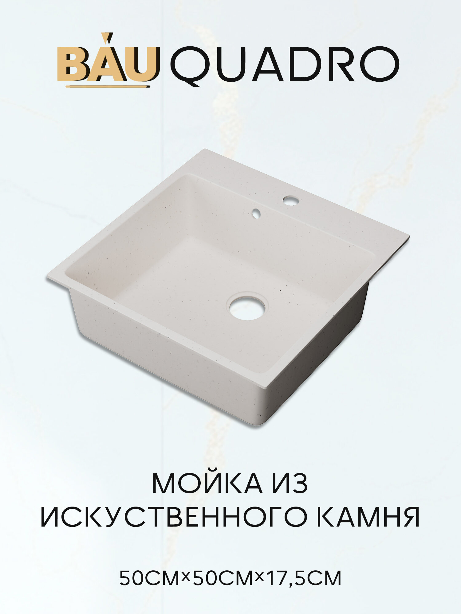 Купить Мойка для кухни BAU Quadro 50х50, без выпуска, белый камень с доставкой по всей России. Мойка для кухни BAU Quadro 50х50, без выпуска, белый камень: сравнение цен, характеристики, фото, актуальное наличие и цены.