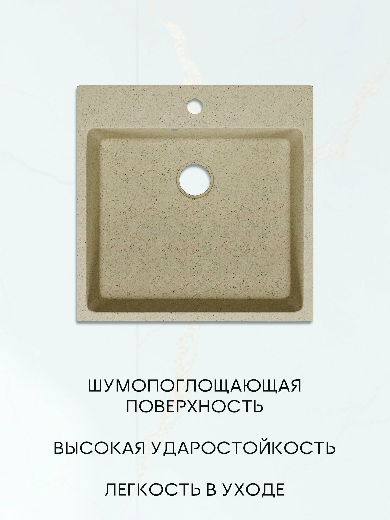 Мойка для кухни BAU Quadro 50х50, без выпуска, бежевый камень: сравнение цен, характеристики, фото, актуальное наличие и цены.