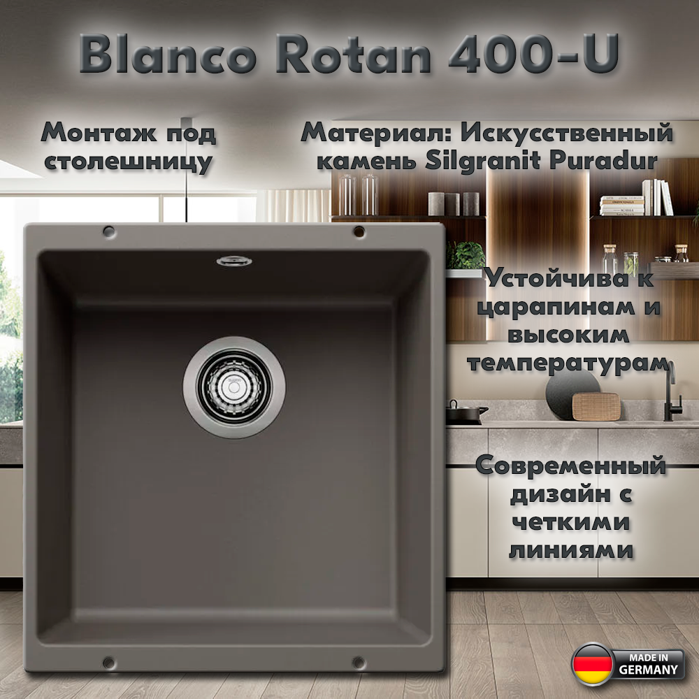 Купить Мойка для кухни Blanco ROTAN 400-U, цвет вулканический серый, квадратная, искусственный гранит с доставкой по всей России. Мойка для кухни Blanco ROTAN 400-U, цвет вулканический серый, квадратная, искусственный гранит: сравнение цен, характеристики, фото, актуальное наличие и цены.