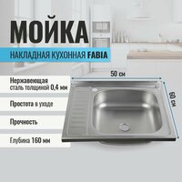 Купить Мойка для кухни FABIA накладная, 60х50, глубина 160 мм, нержавеющая сталь с доставкой по всей России. Мойка для кухни FABIA накладная, 60х50, глубина 160 мм, нержавеющая сталь: сравнение цен, характеристики, фото, актуальное наличие и цены.