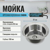 Купить Мойка для кухни FABIA врезная круглая, 51 см, глубина 160 мм, большой сифон с переливом, нержавеющая сталь с доставкой по всей России. Мойка для кухни FABIA врезная круглая, 51 см, глубина 160 мм, большой сифон с переливом, нержавеющая сталь: сравнение цен, характеристики, фото, актуальное наличие и цены.