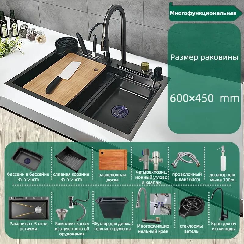 Мойка для кухни FooTai Нержавеющая сталь марки 304 многофункциональная врезная мойка водопад 60 45cm: сравнение цен, характеристики, фото, актуальное наличие и цены.