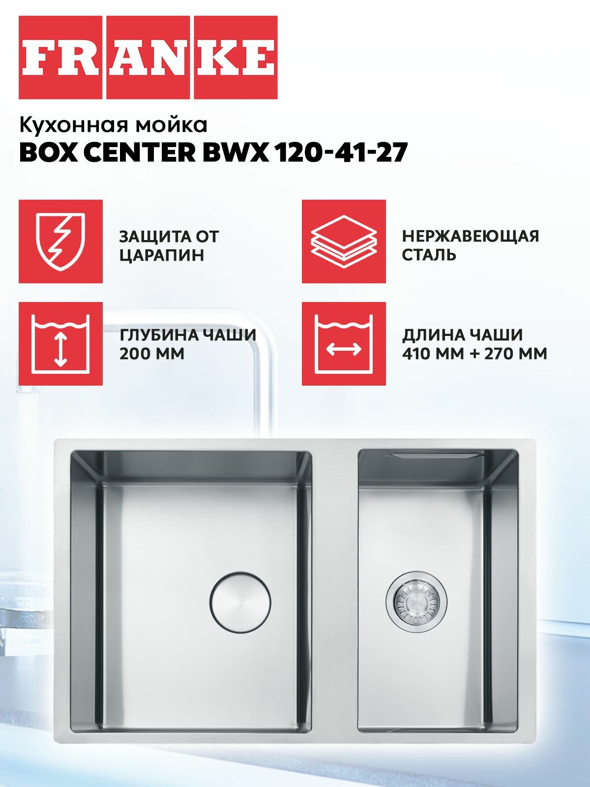 Мойка для кухни Franke из нержавеющей стали BWX 120-41-27 (вентиль-автомат в комплекте): сравнение цен, характеристики, фото, актуальное наличие и цены.