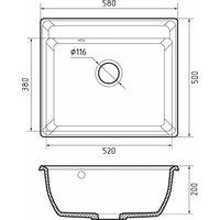 Мойка Granfest Vertex из мраморного композита устойчива к царапинам и воздействию высоких температур. Благодаря отсутствию пористости поверхности не пропускает красящие вещества и не поддерживает размножения бактерий.