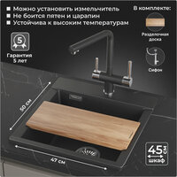 Эта кухонная мойка из кварца с оригинальным дизайном и 7 цветовыми решениями от Granula станет стильным и функциональным дополнением вашей кухни. В комплекте разделочная доска из ясенца и сифон с переливом. Подходит для измельчителей. Гарантия 5 лет.