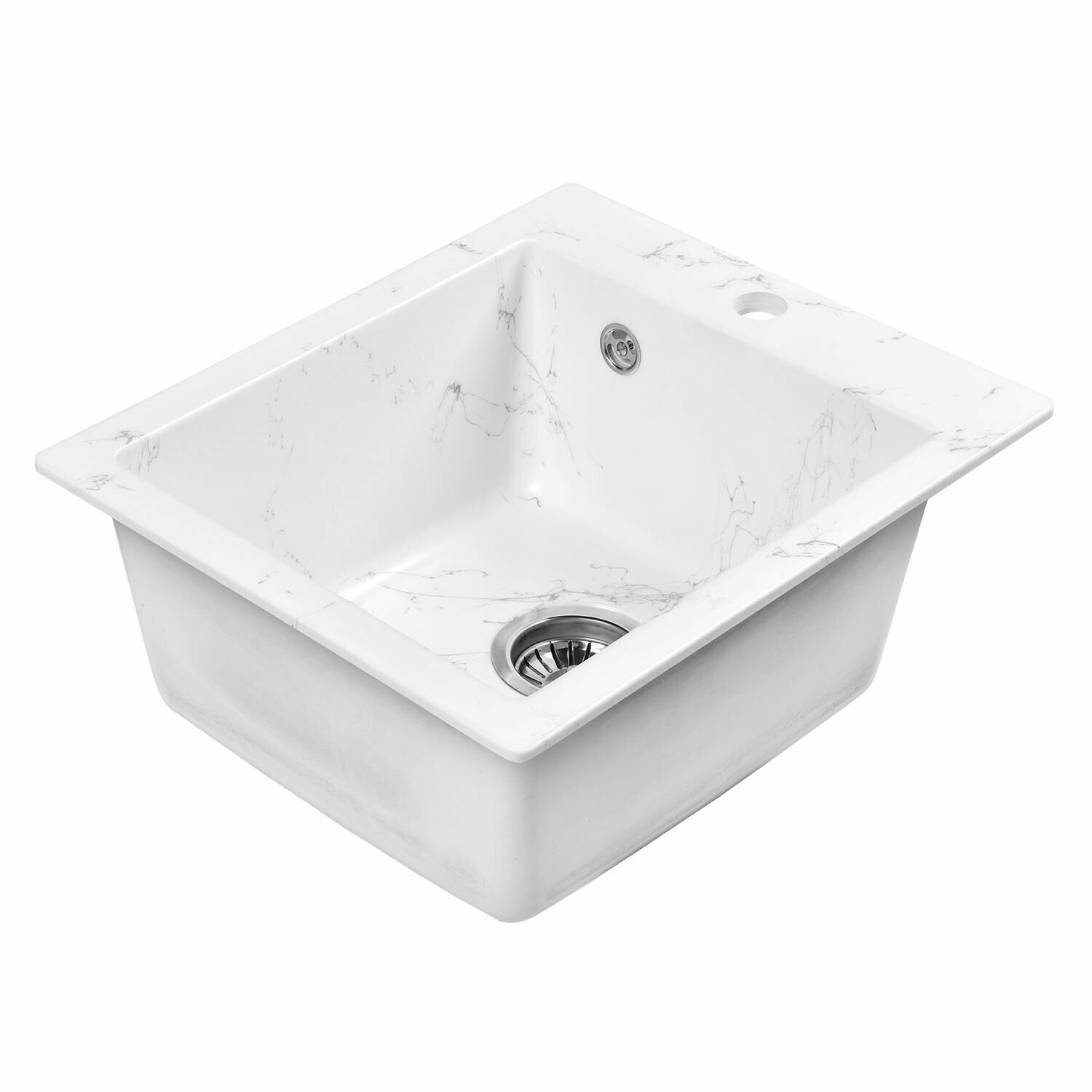Размер мойки 410х480 (±5) мм. Высота чаши 200 мм. Цвет мойки - белый с серыми прожилками. Свойства мойки: - Выдерживает термоудар до 180 градусов (не боится кипятка); - Не впитывает пищевые красители; - Не обладает микропористой поверхностью; - Защита от микро-царапин; - Защита от ультрафиолета; - Защита от грибковых поражений; - Защита от запахов; - Пространственное армирование; - Низкое температурное расширение; - Мойка укомплектована сифоном WGER001, изображение которого размещено в карточке товара. Сифон с отводом для подключения посудомоечной (стиральной) машины и гофротрубой. Выпуск и корзинный клапан изготовлены из нержавеющей стали, комплектующие и винт - из никелированной латуни. Классическая прямоугольная мойка без крыла, компактного размера позволяет установить ее в узкий кухонный модуль. Глубокая чаша вмещает большое количество комплектов посуды.