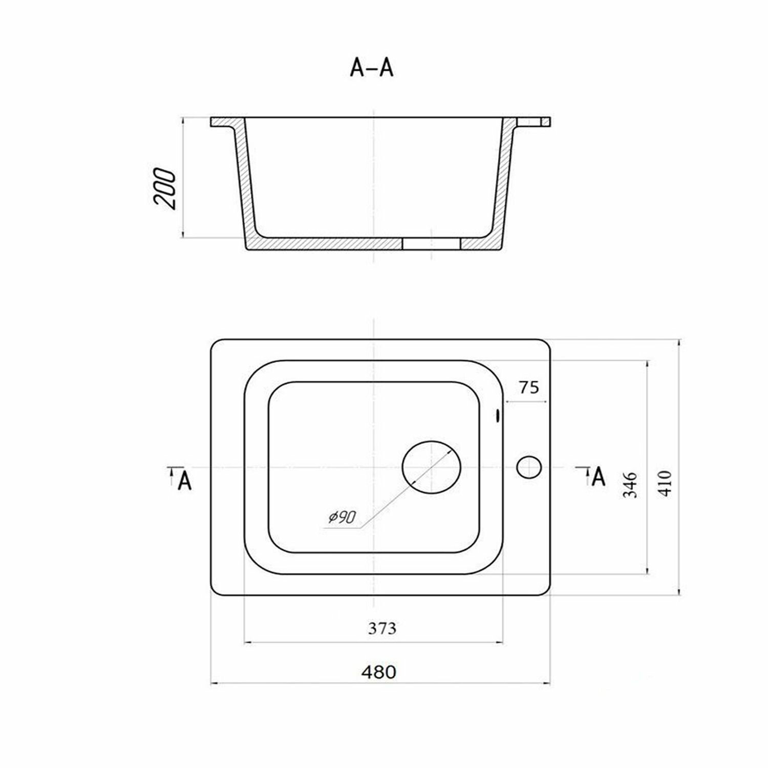 Прямоугольная мойка компактного размера (480х410х220 мм) позволяет установить ее в узкий кухонный модуль. Глубокая чаша (200 мм) вмещает большое количество комплектов посуды.