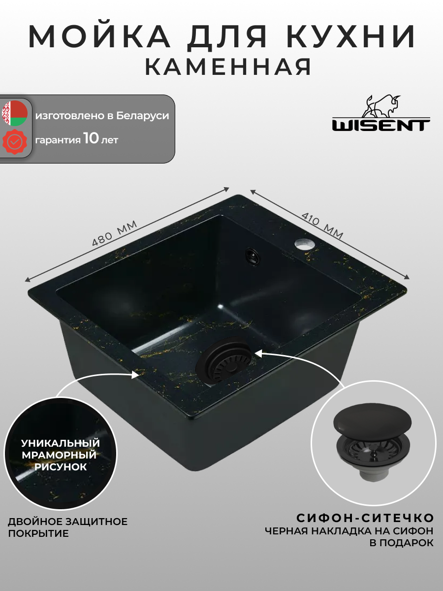 Купить Мойка для кухни из искусственного камня WISENT WA10-14 Мрамор Черно-золотой (беларусь) 480*410*220 с доставкой по всей России. Мойка для кухни из искусственного камня WISENT WA10-14 Мрамор Черно-золотой (беларусь) 480*410*220: сравнение цен, характеристики, фото, актуальное наличие и цены.