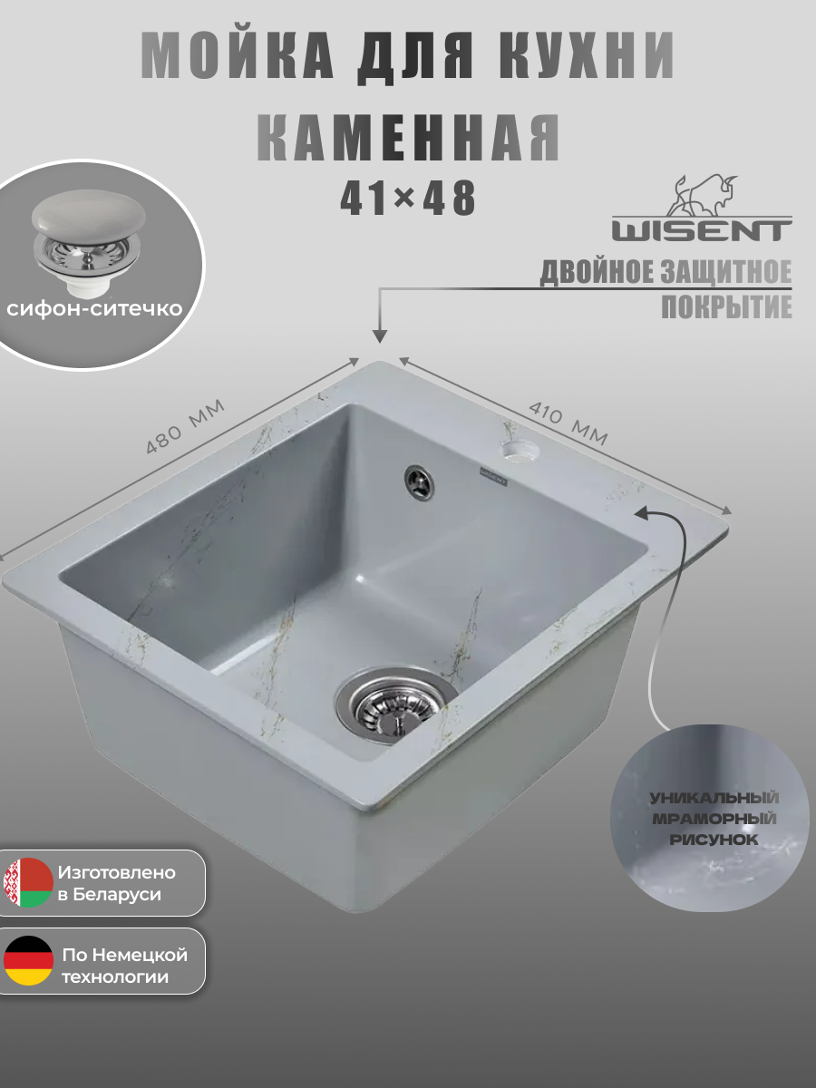 Купить Мойка для кухни из искусственного камня WISENT WA10-15 Мрамор Серо-золотой (беларусь) 480*410*220 с доставкой по всей России. Мойка для кухни из искусственного камня WISENT WA10-15 Мрамор Серо-золотой (беларусь) 480*410*220: сравнение цен, характеристики, фото, актуальное наличие и цены.