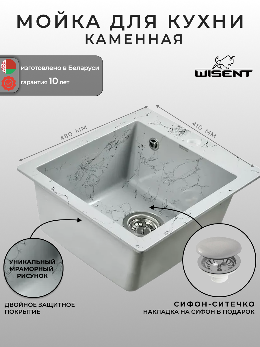 Купить Мойка из искусственного камня для кухни WISENT WA10-16 Мрамор Серо-черный (беларусь) 480*410*220 с доставкой по всей России. Мойка из искусственного камня для кухни WISENT WA10-16 Мрамор Серо-черный (беларусь) 480*410*220: сравнение цен, характеристики, фото, актуальное наличие и цены.