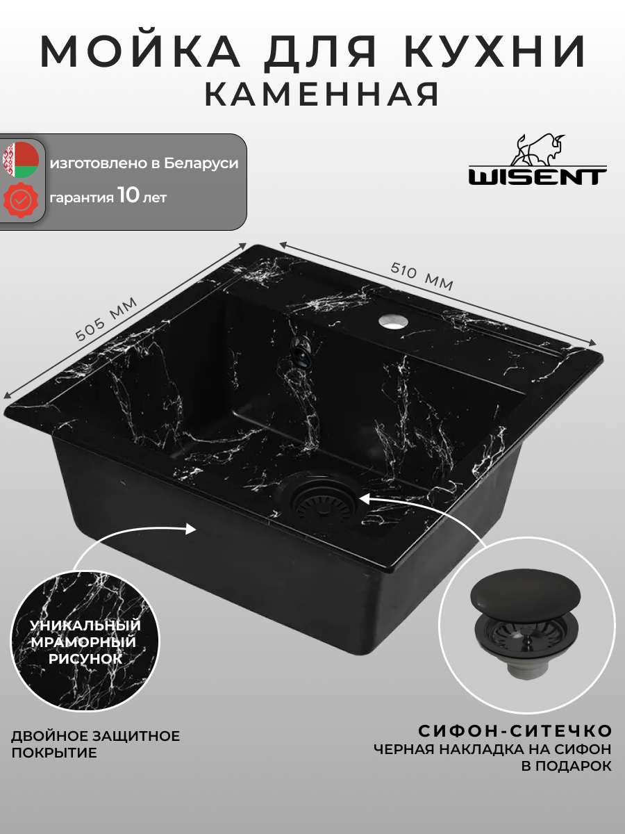 Купить Мойка для кухни из искусственного камня WISENT WA11-11 Мрамор Черно-белый (беларусь) 505*510*200 с доставкой по всей России. Мойка для кухни из искусственного камня WISENT WA11-11 Мрамор Черно-белый (беларусь) 505*510*200: сравнение цен, характеристики, фото, актуальное наличие и цены.