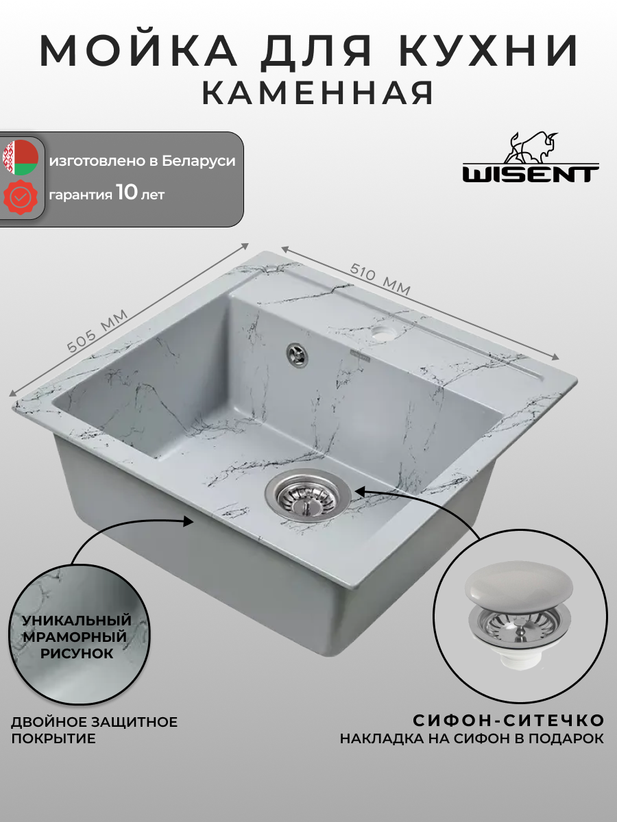 Мойка для кухни из искусственного камня WISENT WA11-16 Мрамор Серо-черный (беларусь) 505*510*200: сравнение цен, характеристики, фото, актуальное наличие и цены.