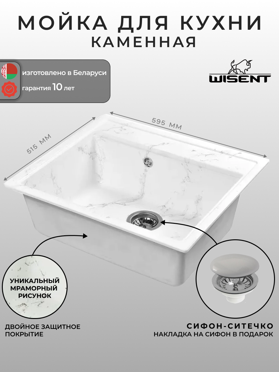 Купить Мойка для кухни из искусственного камня WISENT WA12-10 Мрамор Бело-серый (беларусь) 515*595*200 с доставкой по всей России. Мойка для кухни из искусственного камня WISENT WA12-10 Мрамор Бело-серый (беларусь) 515*595*200: сравнение цен, характеристики, фото, актуальное наличие и цены.