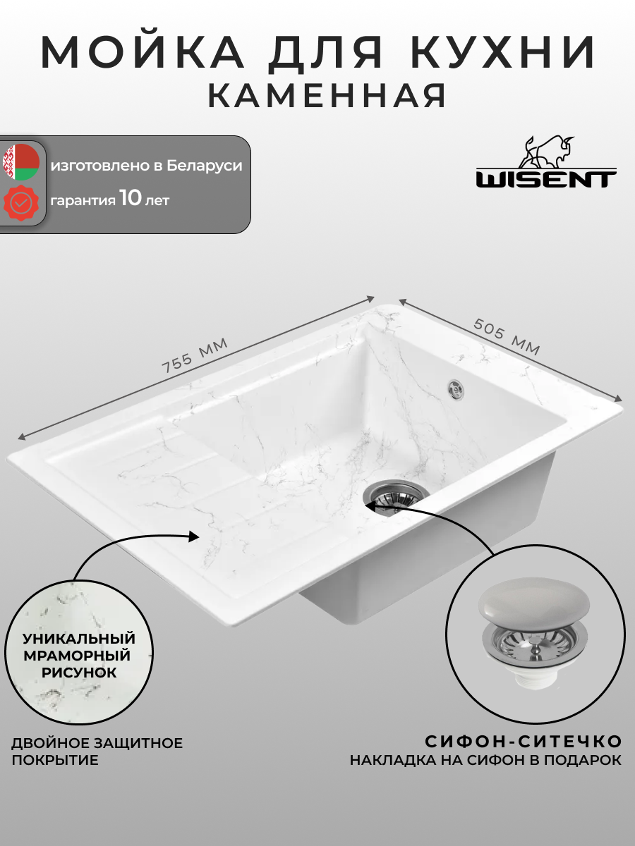 Мойка для кухни из искусственного камня WISENT WB28-10 Мрамор Бело-серый (беларусь) 510*780*220: сравнение цен, характеристики, фото, актуальное наличие и цены.