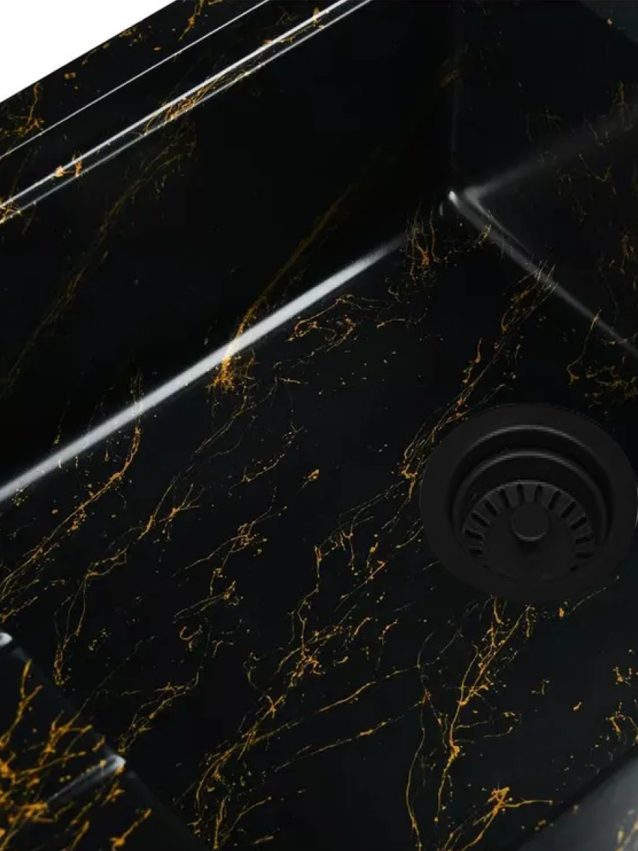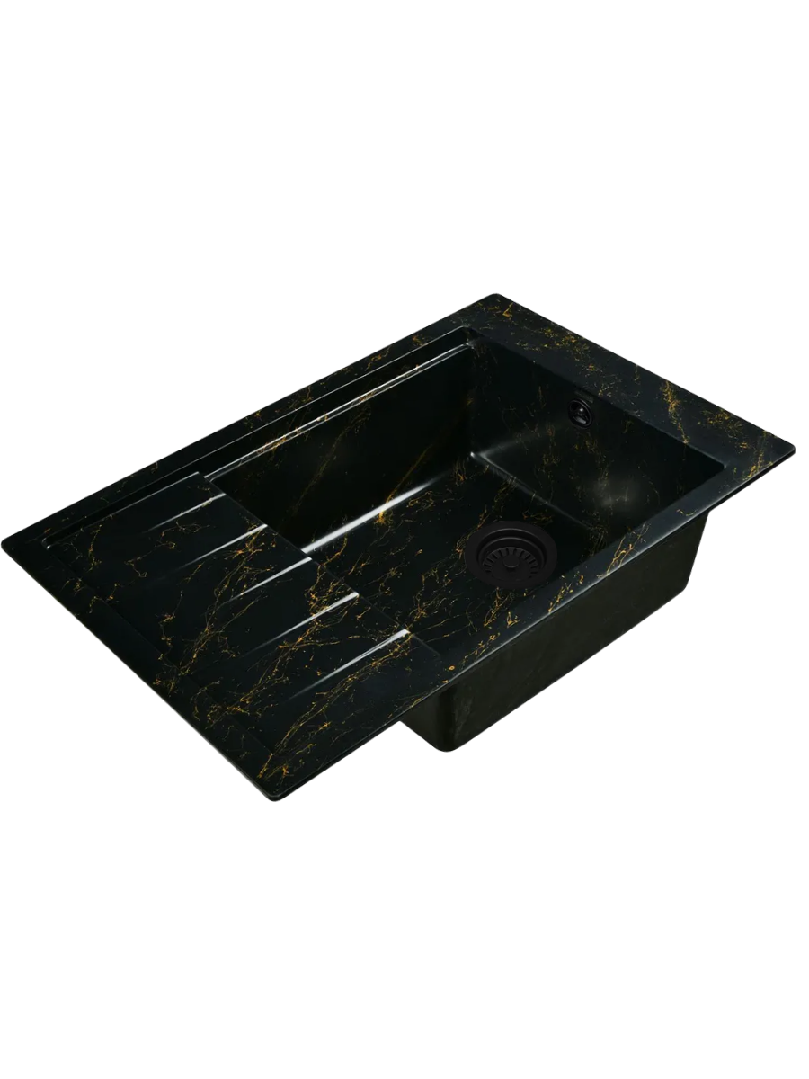 Купить Мойка из искусственного камня для кухни WISENT WB28-14 Мрамор Черно-золотой (беларусь) 510*780*220 с доставкой по всей России.