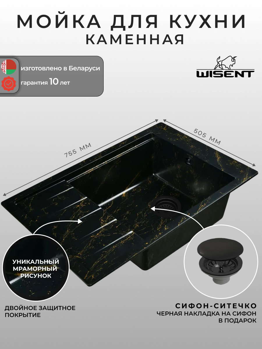 Мойка из искусственного камня для кухни WISENT WB28-14 Мрамор Черно-золотой (беларусь) 510*780*220: сравнение цен, характеристики, фото, актуальное наличие и цены.