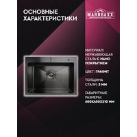 Мойка для кухни из нержавеющей стали 60 х 45, с сифоном и решеткой для овощей, «MARRBAXX», графитовая: сравнение цен, характеристики, фото, актуальное наличие и цены.