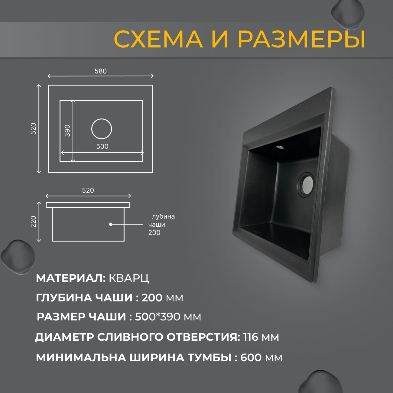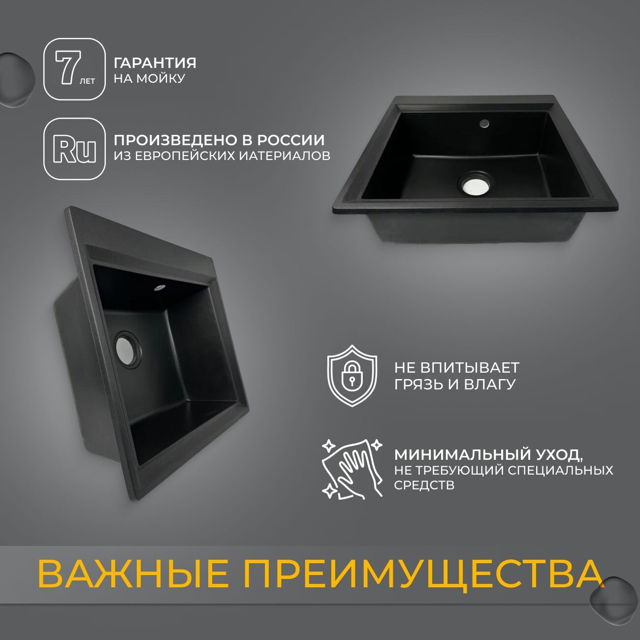 Купить Мойка для кухни каменная черная 57х51, врезная/подстольный монтаж, прямоугольная с доставкой по всей России. Мойка для кухни каменная черная 57х51, врезная/подстольный монтаж, прямоугольная: сравнение цен, характеристики, фото, актуальное наличие и цены.