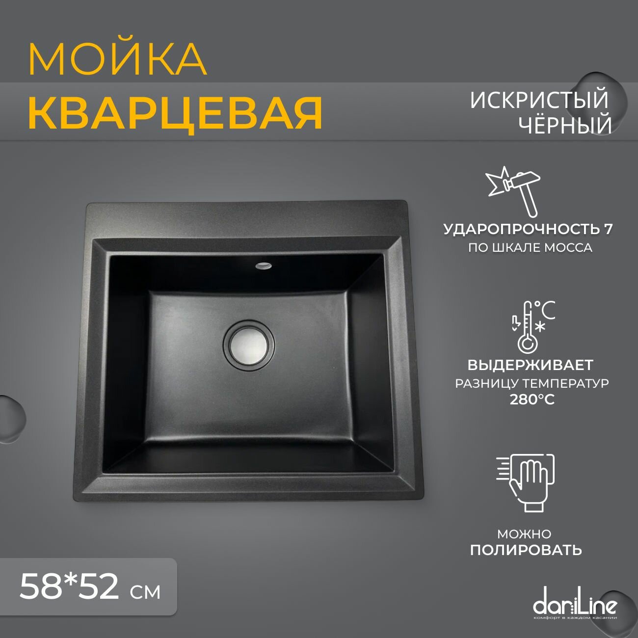 Кварцевая мойка DARILINE — это идеальное решение для современной кухни, сочетающее в себе прочность, гигиеничность и стильный дизайн. Мойка для кухни обладает богатой цветовой палитрой, благодаря чему впишется в любой интерьер. Это не просто обычная мойка из камня, а настоящий символ стиля и функциональности. Мойка изготовлена из кварцевого композита, который обеспечивает высокую устойчивость к механическим повреждениям, химическим воздействиям и высоким температурам. Благодаря специальной обработке поверхности, на кварцевой раковине не задерживается грязь и бактерии, что делает ее легкой в уходе и поддержании чистоты. Выбирая мойку из кварца, вы инвестируете в надежность и долговечность, создавая комфортное и стильное пространство на вашей кухне.