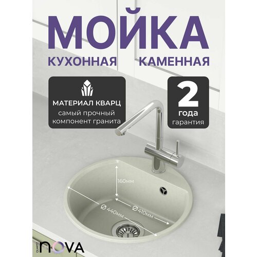 Мойка для кухни каменная круглая врезная NOVA 44 белый: сравнение цен, характеристики, фото, актуальное наличие и цены.
