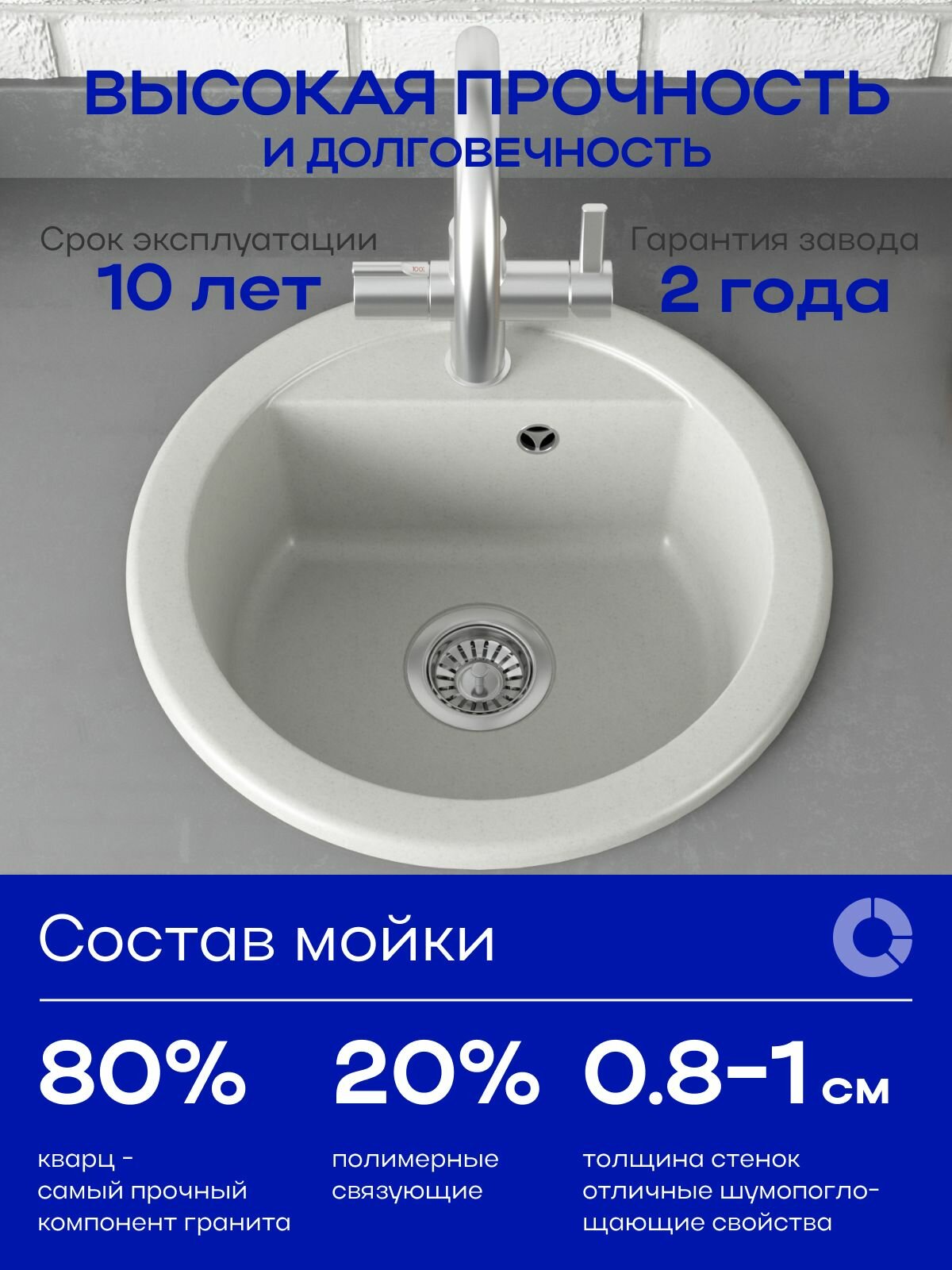 Мойка для кухни каменная круглая врезная NOVA 51 N белый: сравнение цен, характеристики, фото, актуальное наличие и цены.