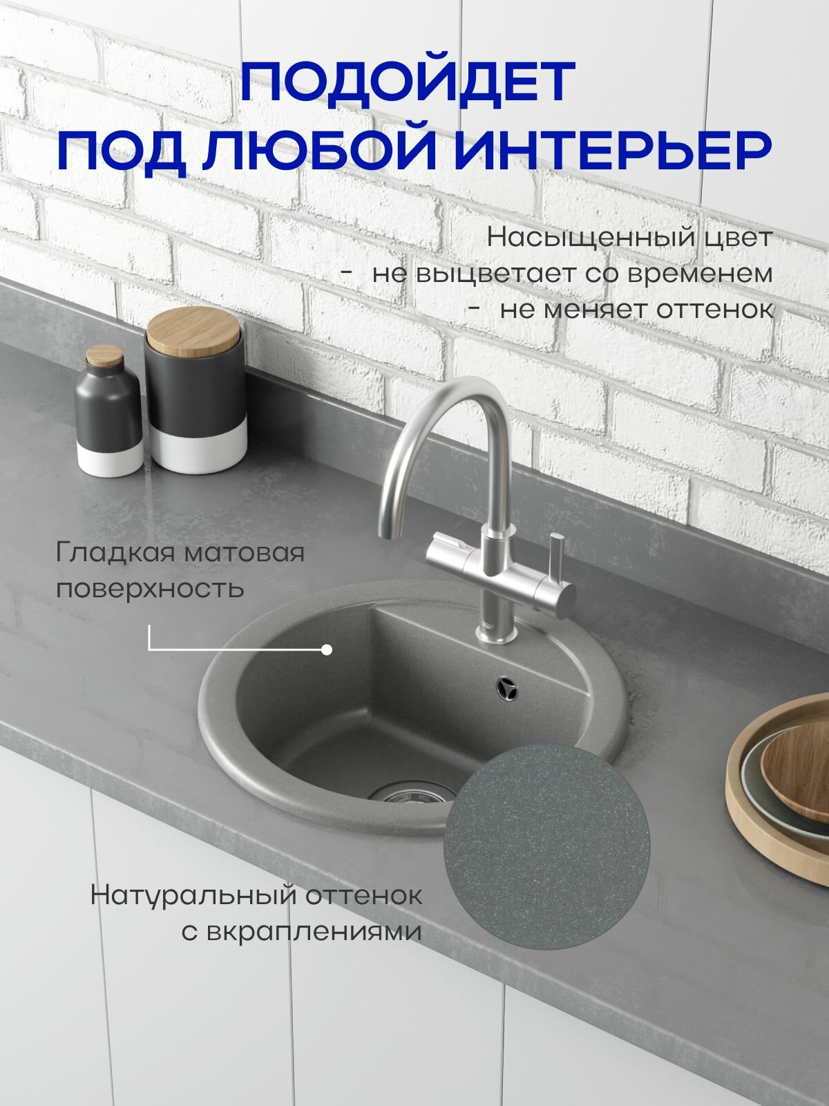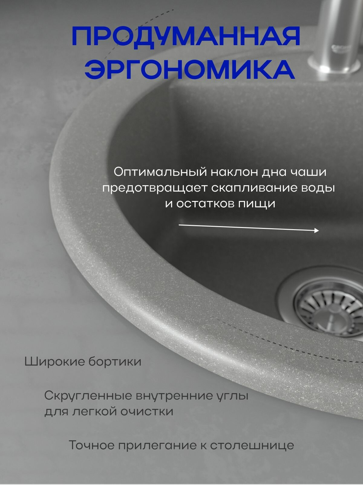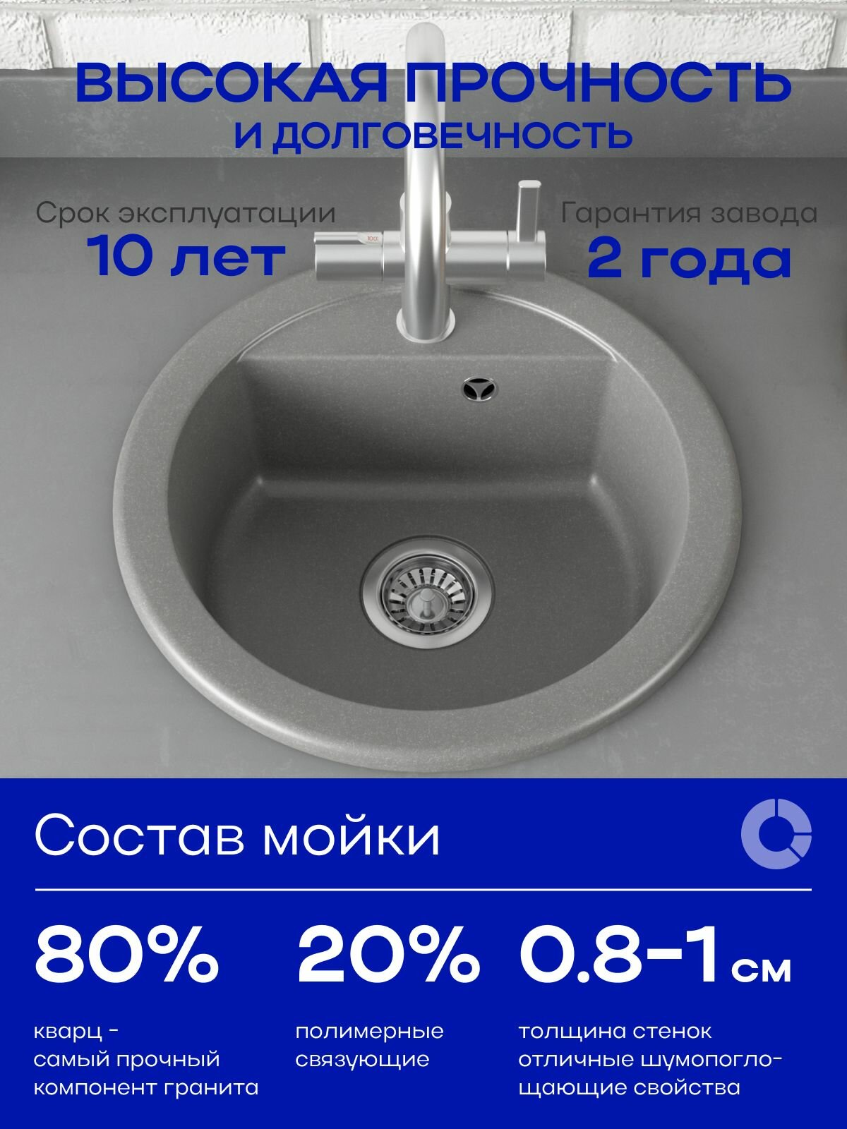 Купить Мойка для кухни каменная круглая врезная NOVA 51 N серый с доставкой по всей России.