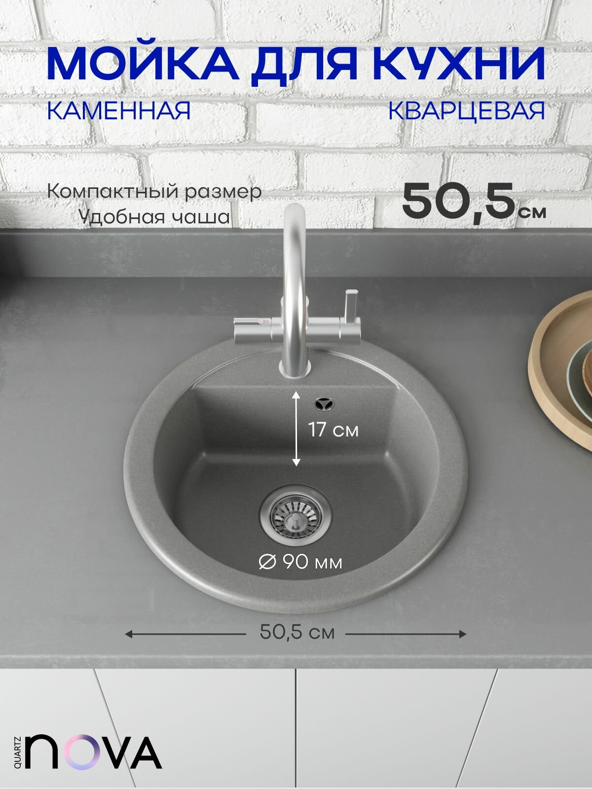 Мойка для кухни каменная круглая врезная NOVA 51 N серый: сравнение цен, характеристики, фото, актуальное наличие и цены.