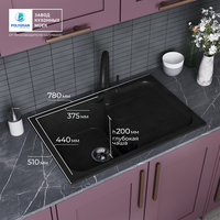 Мойка для кухни каменная POLYGRAN ALTO-780, Черная, Врезная, Квадратная, С крылом (Космос): сравнение цен, характеристики, фото, актуальное наличие и цены.