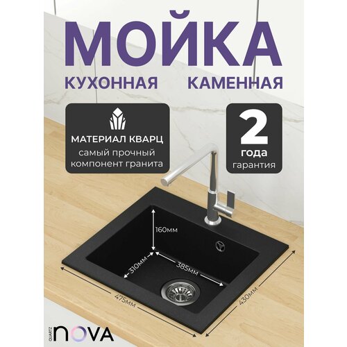 Мойка для кухни каменная прямоугольная Nova 48-44 — это стильное решение для современной кухни. Кухонная мойка черная, выполненная из кварцевого композита, станет практичным элементом сантехники.