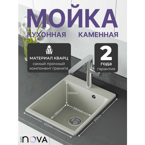 Мойка для кухни каменная прямоугольная Nova 51-42 — это стильное решение для современной кухни. Кухонная мойка белая, выполненная из кварцевого композита, станет практичным элементом сантехники.