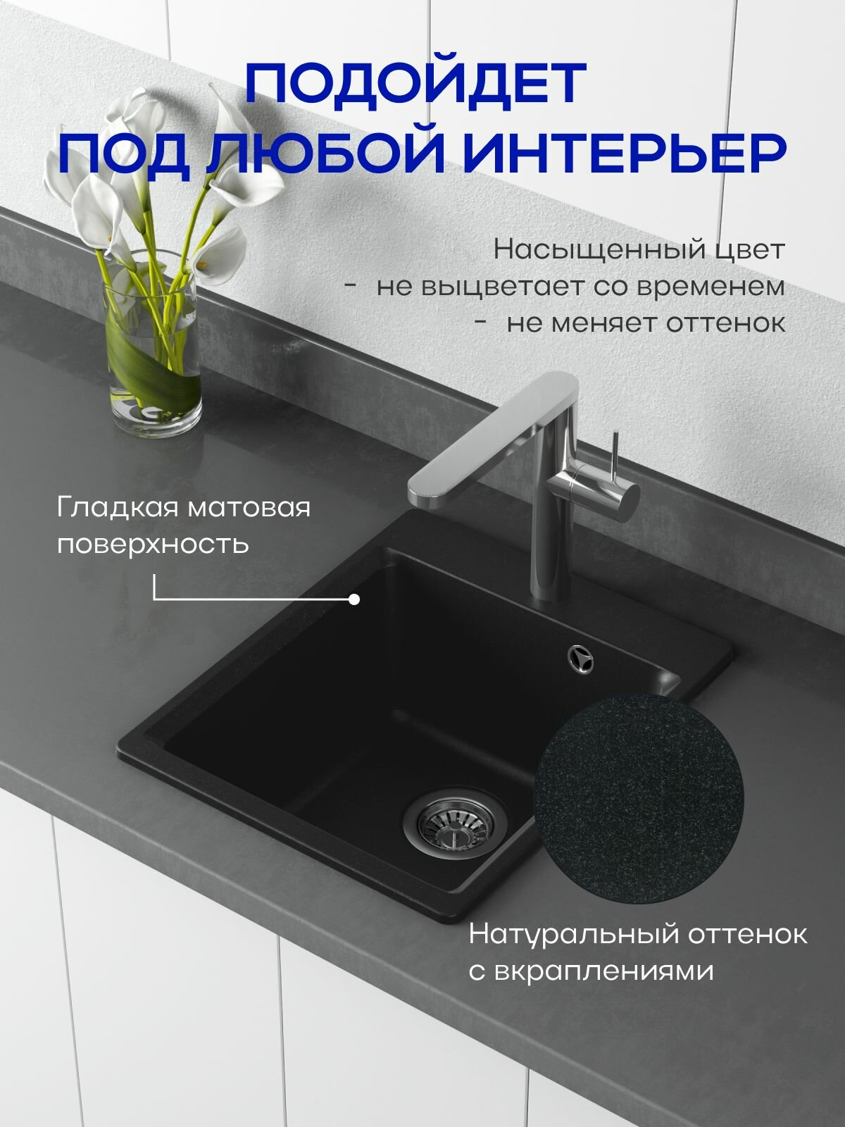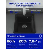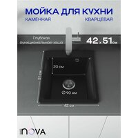 Мойка для кухни каменная прямоугольная Nova 51-42 — это стильное решение для современной кухни. Кухонная мойка черная, выполненная из кварцевого композита, станет практичным элементом сантехники.