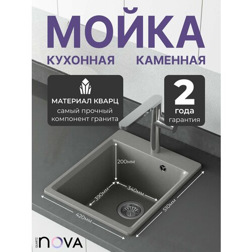 Мойка для кухни каменная прямоугольная Nova 51-42 — это стильное решение для современной кухни. Кухонная мойка серая, выполненная из кварцевого композита, станет практичным элементом сантехники.