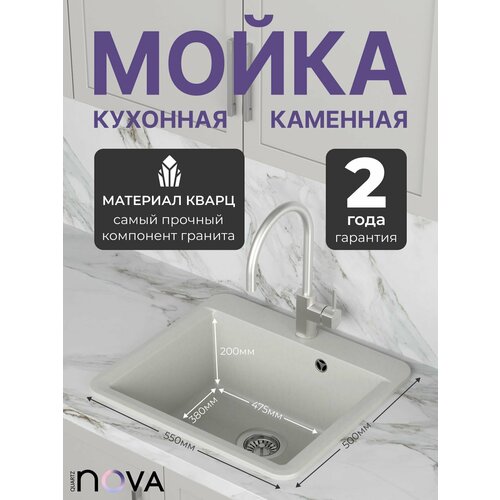 Купить Мойка для кухни каменная прямоугольная врезная NOVA Вега белый с доставкой по всей России.