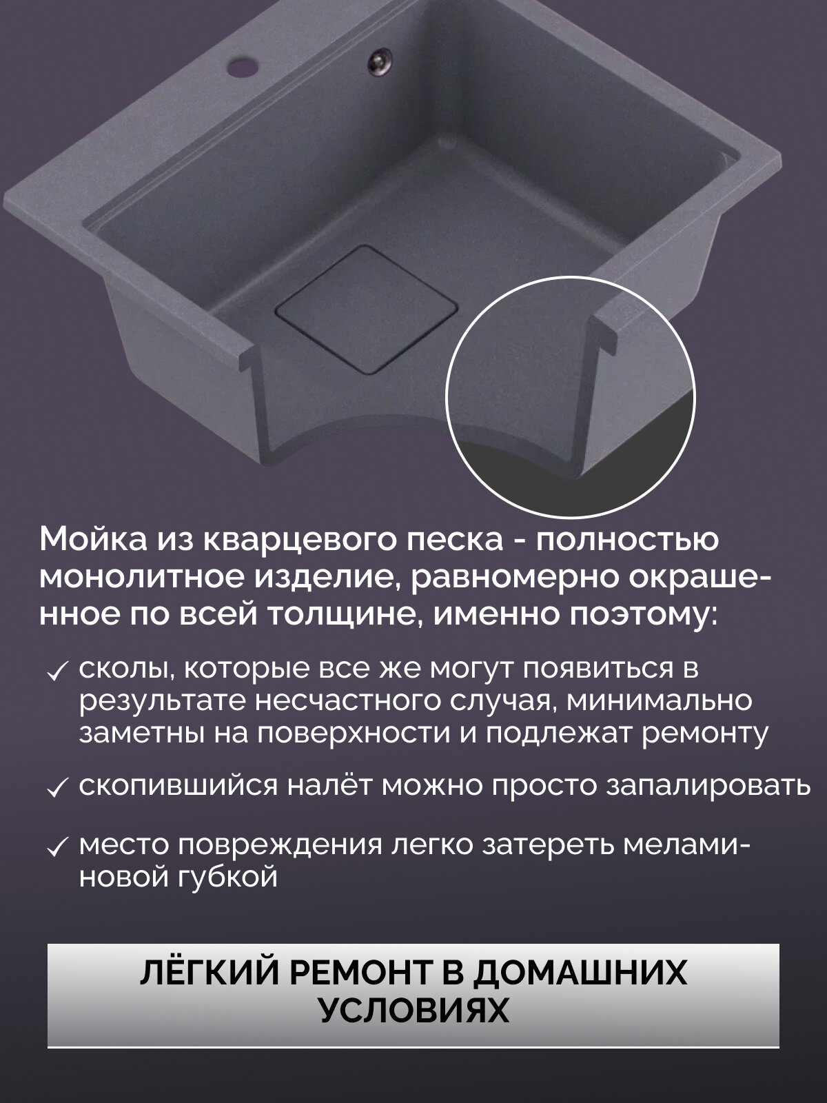 Купить Мойка для кухни каменная серая 56х51, врезная/подстольный монтаж, прямоугольная с доставкой по всей России. Мойка для кухни каменная серая 56х51, врезная/подстольный монтаж, прямоугольная: сравнение цен, характеристики, фото, актуальное наличие и цены.