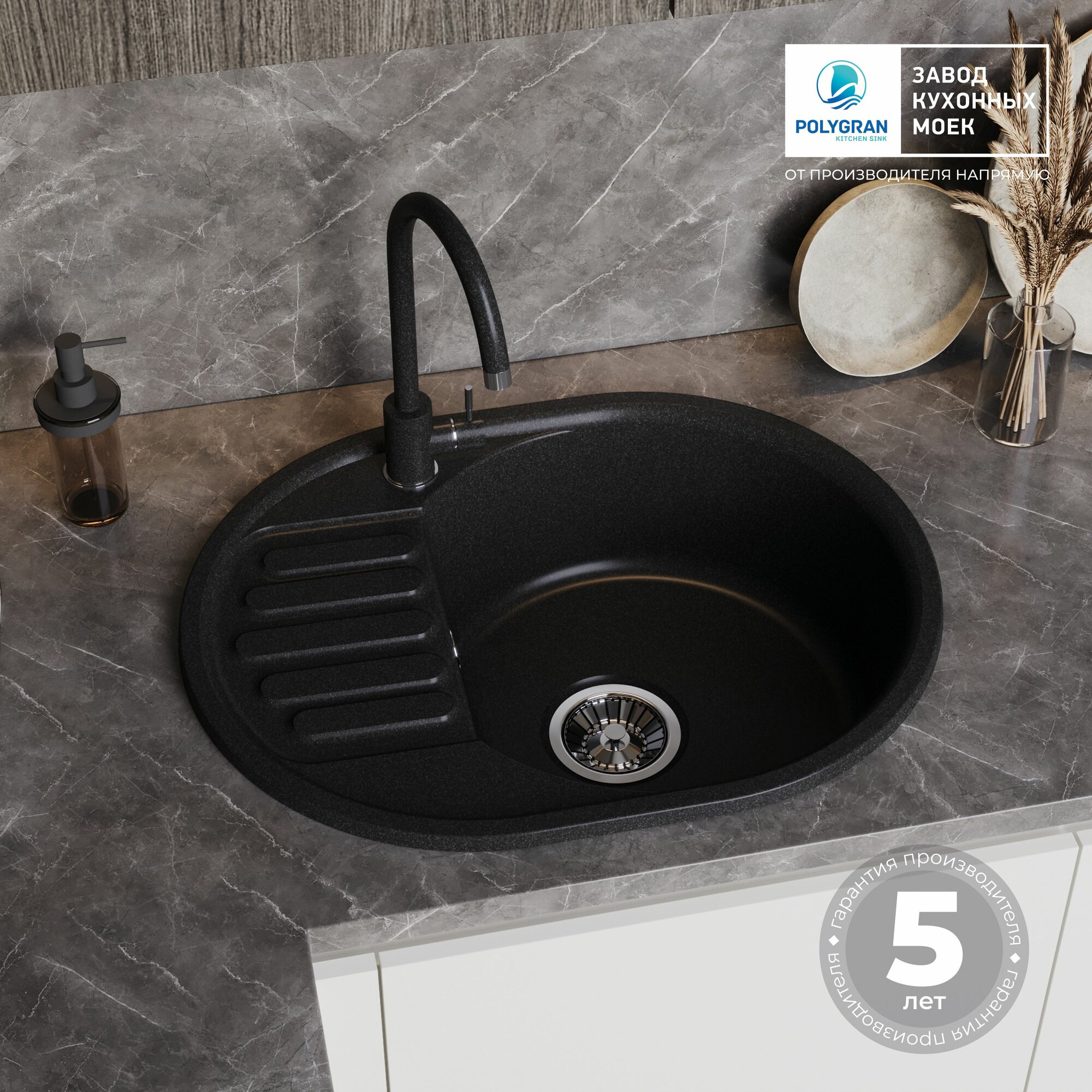 Ее круглую форму легко вписать в любой интерьер, а черный цвет добавит элегантности и утонченности. Специальное крыло на мойке обеспечивает дополнительное пространство для сушки посуды и подготовки еды. Искусственный камень отличается высокой прочностью, устойчивостью к царапинам, химическим веществам и высокой температуре, что делает эту раковину идеальным выбором для повседневного использования.