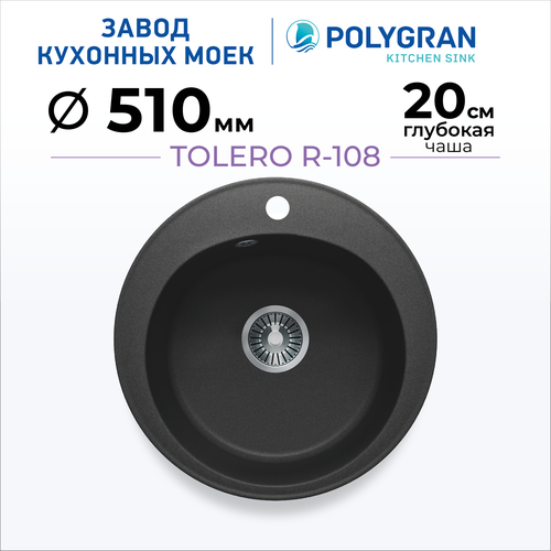 Мойка для кухни кварцевая TOLERO CLASSIC R-108, Черная, Врезная, Каменная, Круглая (Уголь): сравнение цен, характеристики, фото, актуальное наличие и цены.